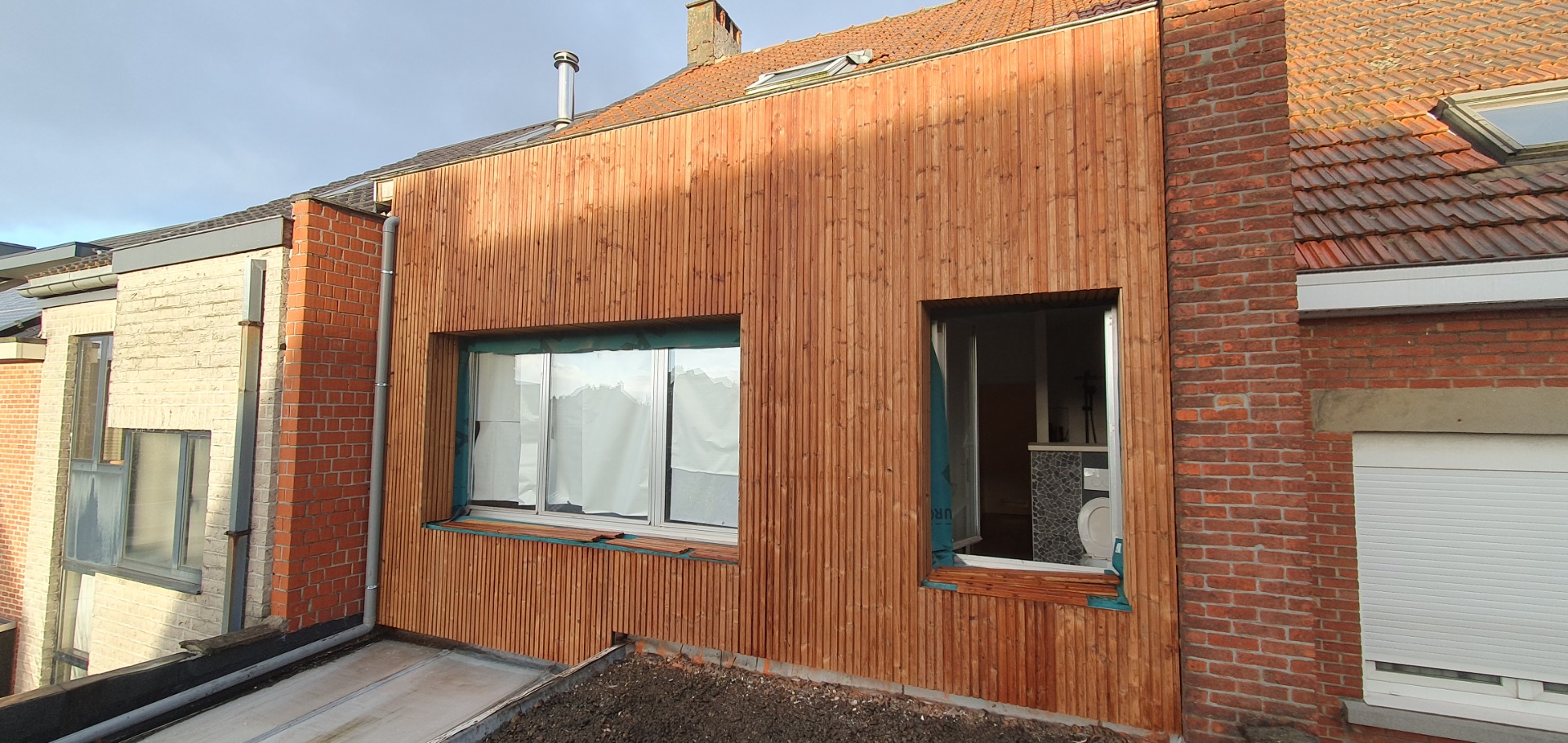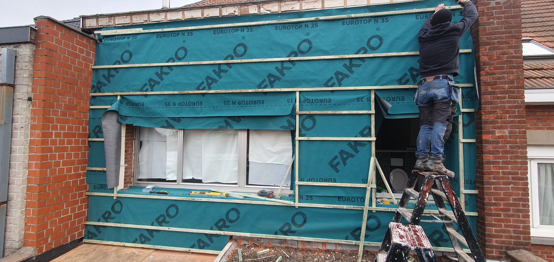 * Gevelwerken: Het herstellen, isoleren of bekleden van de buitengevel. Met hout of crepi